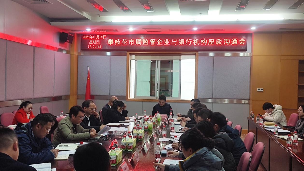 为认真谋划2026年工作,精准把握国有企业发展资金需求,深化银企合作,破解融资难题,推进全市国有经济高质量发展,12月25日下午,市国资委联合市财政局组织召开市属监管企业与银行机构座谈交流会。市国资委副主任范昌明主持会议,市财政局副局长王泽勇出席会议并讲话,6家市属国有企业和11家银行机构分管负责人参会。